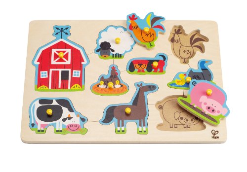 Ad 1 anno i bimbi sono troppo piccoli per risolvere i primi puzzle, però riescono ad abbinare le forme uguali, proprio come in questo gioco. Sulla plancia in legno il piccolo troverà tanti animali della fattoria, che potrà togliere e inserire nella forma corrispondente. Questo giocattolo è realizzato da Hape ed è conforme agli standard di sicurezza americani ed europei.